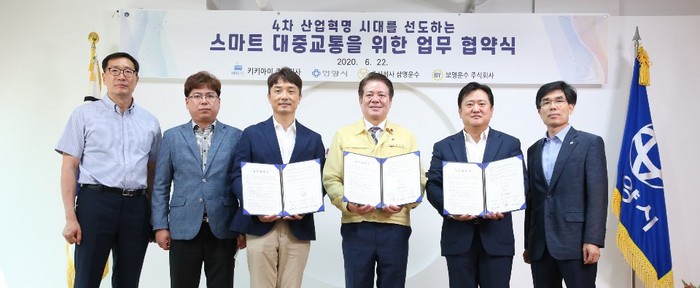 [세계로컬타임즈 최성우 기자] 안양시는 삼영운수·보영운수, 키키아이 등 2개 기관과 자율주행 기반의 스마트 대중교통화에 함께 앞장설 것을 다짐하는 업무협약을 가졌다.