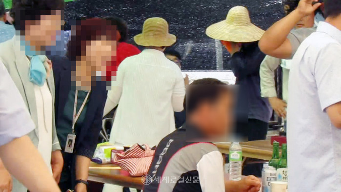개회식이 끝나자 S 과장은 곧 바로 행사장 내에 설치된 각 읍, 면동 음식부스를 향하는 A씨의 뒤를 따랐다. 분주하게 식사 준비를 하던 시민들을 향해 A씨가 "안녕하세요"라며 인사를 건네면 S과장이 "시장님 사모님이에요"라고 거들었다. 간간히 S 과장이 먼저 시민들을 향해 "시장님 사모님 오셨어요"라고 외치는 모습도 보였다.