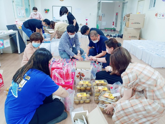 | ▲ 건강취약 가구에게 전달 될 영양보충 키트를 만들고 있다. (사진=화성시 제공) |