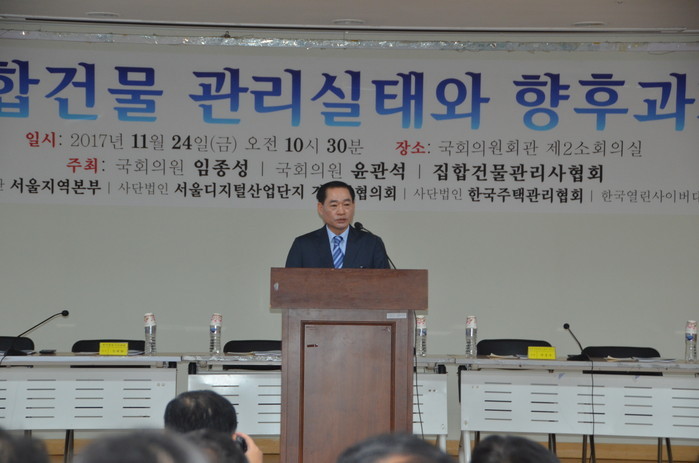 또 더불어민주당 임종성 국회의원은 축사에서 “집합건물의 복합적인 기능과 용도의 다양성이 급증하고 공공의 생활공간으로 자리잡아 가는 집합건물의 사회적 안전망이 절실한 시점”이라며 “주택관리의 논의에 밀려 소외 되어온 상업용 집합건물 관리에 대한 발전적 대안을 논의하고 공유할 수 있는 뜻 깊은 자리가 되길 바란다”고 밝혔다.