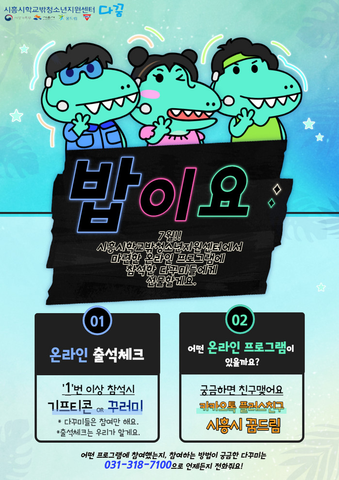 | ▲ 시흥시 학교밖청소년지원센터 '다꿈' 급식지원 포스터. (사진=시흥시 제공) |