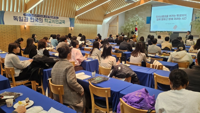 이번 연수는 ‘2025 국제교류 기반 학교민주시민교육 교사아카데미’의 일환으로, 지난 7월 독일에서 민주시민교육을 탐구한 교사들이 연구 결과를 담은 『독일과 한국의 학교시민교육-세 번째 이야기』를 바탕으로 진행됐다.