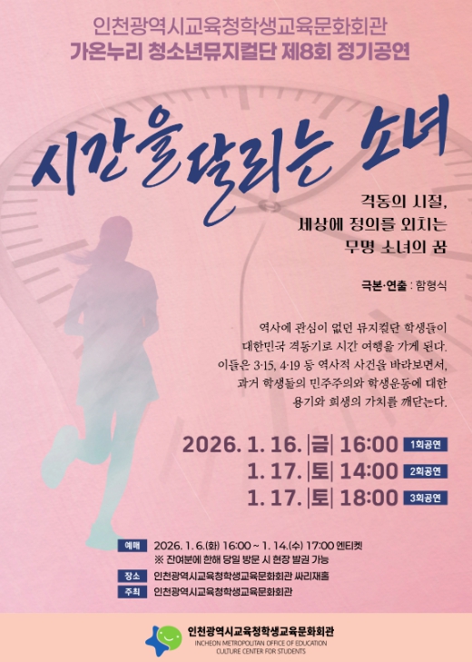 이번 공연은 함형식 감독이 제작한 창작 뮤지컬로 역사에 무관심했던 청소년들이 대한민국 격동기로의 시간 여행을 통해 과거 민주주의 학생운동 속 용기와 희생을 마주하며, 오늘을 살아가는 우리가 지켜야 할 가치와 의미를 되새긴다는 내용이다.