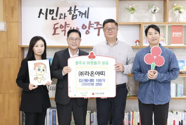 세계로컬타임즈 - ㈜라온아띠, 양주시에 이웃돕기 성품 기탁