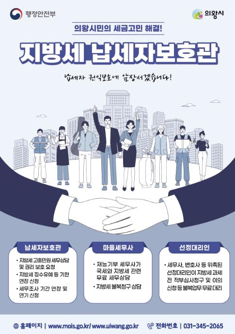 의왕시 지방세 납세자보호관은 시 감사담당관에 전문 세무공무원을 전담 배치해 위법·부당한 처분을 납세자 입장에서 해결하거나, 지방세와 관련해 고충이 있는 납세자에게 도움을 주는 제도다.