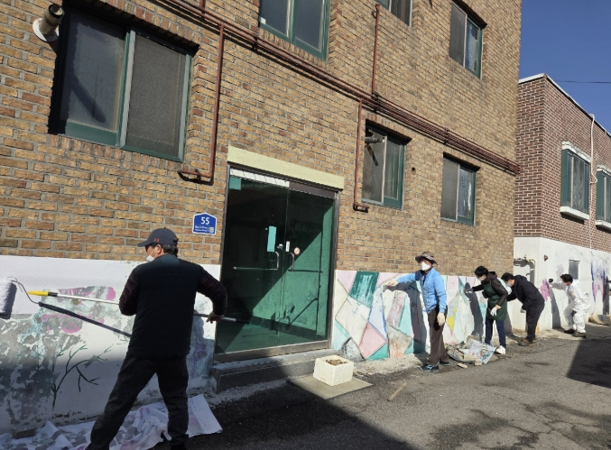 이번 사업은 오랜 시간이 지나 색이 바래고 일부 훼손된 벽화가 도시 미관을 저해한다는 주민 의견을 반영해 마련됐다. 주민자치위원회는 기존 벽화를 전면 제거한 뒤, 한 가지 색상으로 통일감 있게 재도색하는 방식으로 보수 작업을 진행했다.