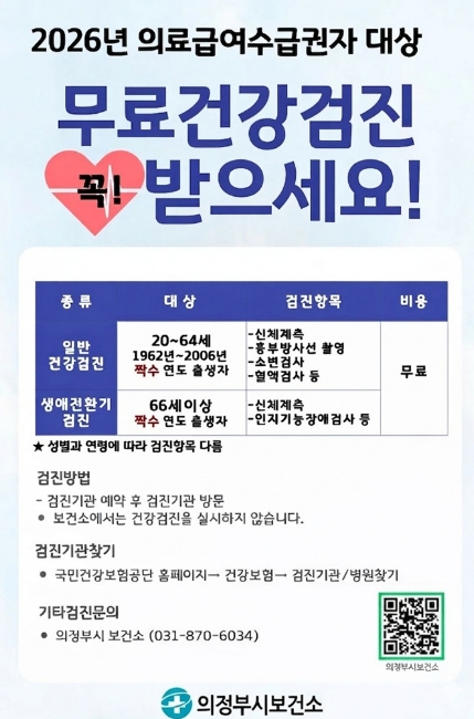 이번 검진 대상은 짝수연도 출생자 중 20~64세이며, 66세 이상은 생애전환기 건강검진 대상자에 해당한다.