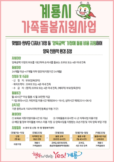 이번 사업은 양육 공백 가정의 부모를 대신해 가족 내에서 돌봄이 이뤄질 수 있도록 지원함으로써, 아이의 복지 증진과 가족 구성원의 삶의 질 향상을 도모하기 위해 마련됐다.