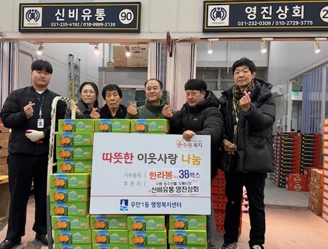 신비유통‧영진상회는 최근 우만1동 행정복지센터에 한라봉 38박스를 기부하며, 관내 취약계층을 위한 명절 나눔에 동참했다. 이번 후원은 명절을 맞아 소외감을 느끼기 쉬운 이웃들이 조금이나마 풍성하고 따뜻한 설을 보내길 바라는 마음에서 마련됐다.