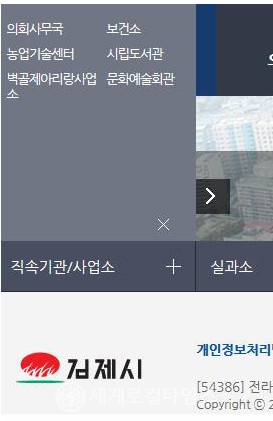 그런데 '직속기관/사업소'에 의회관련 링크를 걸어둔 건 전북14개 지자체 중 김제시가 유일하다.