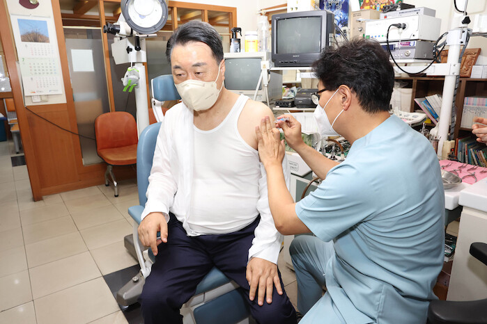 | ▲사진은 28일 구복규 화순군수가 코로나19 4차 백신 접종을 하는 모습(사진=화순군) |