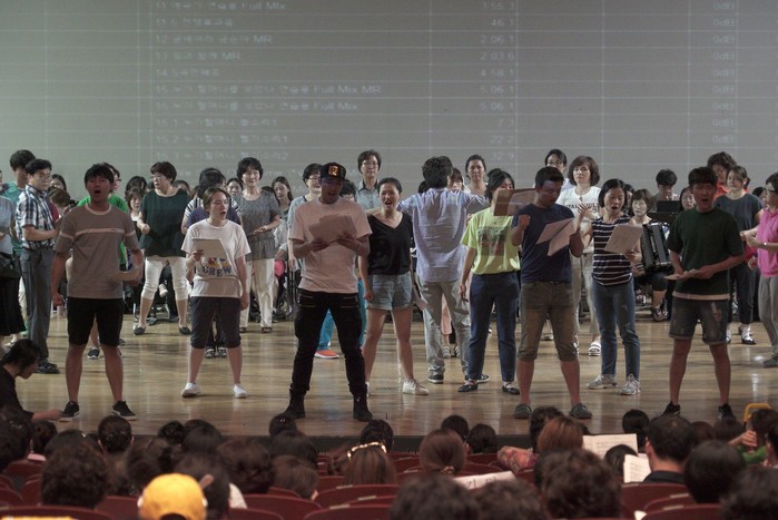 | ▲ 오는 26일 제3회 부천시 생활문화 페스티벌 ‘다락(多樂)’의 폐막공연에서 선보일 시민뮤지컬 '흐르는 강물처럼' 리허설을 하고 있는 모습.<사진제공=부천시청> |