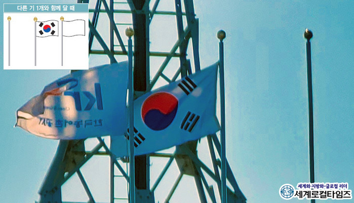 [세계로컬타임즈 글·사진 조주연 기자] 한국농어촌공사의 규정을 무시하는 국기 게양이 또 포착됐다.