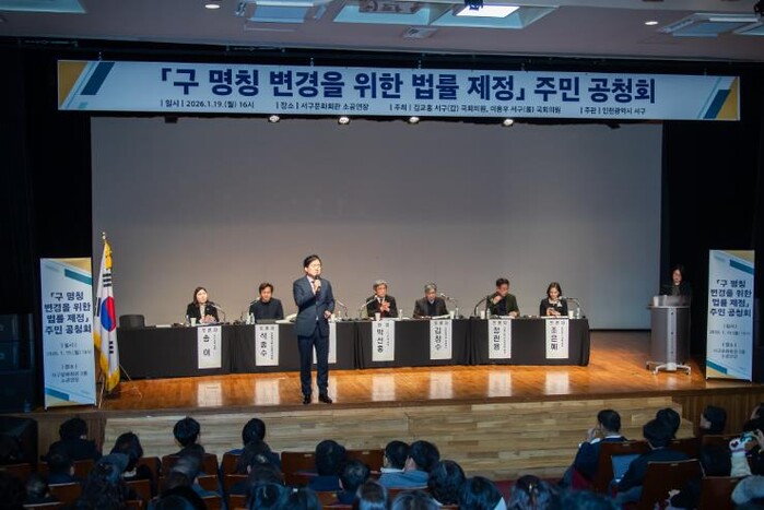 이용우(서구을) 국회의원은 “구 명칭을 확정하기 위해서는 법률 제정이 필요하며 공청회는 필수 절차”라며 “10년, 100년, 1000년이 갈 수 있는 구 명칭을 결정함에 있어 주민들의 의견을 많이 들어야 한다”라고 전했다.