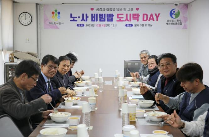 [세계로컬타임즈] 의왕도시공사는 12월 4일 노사 간 협력과 소통을 강화하고 건강한 조직문화 확산을 위한 ‘노·사 비빔밥 도시락데이’ 행사를 개최했다고 밝혔다.