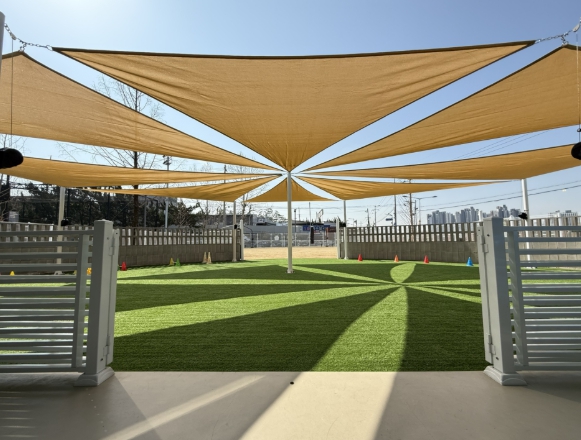 구는 우선 인조잔디가 깔린 프로그램 공간 전반에 대형 그늘막을 설치했다. 이를 통해 한여름 뜨거운 햇볕을 차단하고, 여름철 반려견의 발바닥 화상 위험을 줄이는 등 이용 환경을 대폭 개선했다.