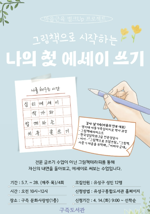 이번 프로그램은 그림책을 활용해 참여자의 자기 이해를 돕고, 감정 표현을 글쓰기로 확장해 심리적 회복력 향상을 지원하기 위해 마련됐다.
