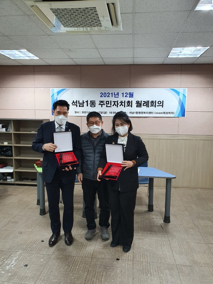 김정환 석남1동 주민자치회장은 “석남1동의 오래된 문제와 각종 현안을 해결하기 위해 애쓰며 주민과의 소통을 위해 항상 노력하시는 정영신 의원님과 김미연 의원님께 감사드린다”며 “그 마음을 담아 감사패를 드린다”고 말했다.