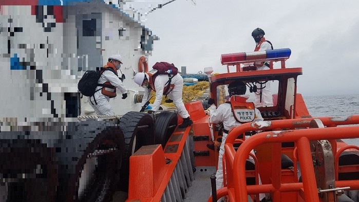| ▲ 목포해경이 밀수의심 선박을 검문검색하기 위해 등선하고 있다.(사진=목포해경) |