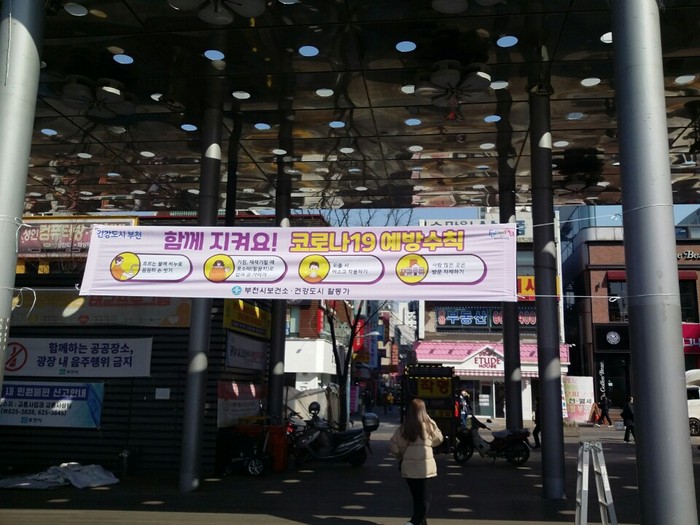 8일 부천시는 최근 게시된 코로나 예방 홍보 및 사회적 거리두기 동참 현수막은 시민들이 많이 이용하는 장소인 부천역 마루광장, 송내역 북부광장, 중앙공원 등에 게시해 홍보 효과를 높였다고 밝혔다. 특히 시는 ‘사회적 거리두기’에 동참하는 것이 지역 사회 감염 확산을 방지하고 스스로를 지키는 가장 효과적인 방역수단임을 강조했다.
