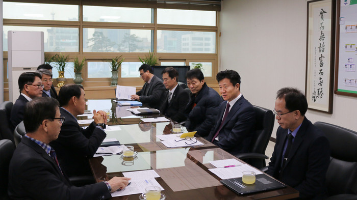 | ▲ 지난 5일 시장 집무실에서 유관기관ㆍ단체장과 관계공무원이 참석한 가운데 ‘미래해양인재 육성을 위한 간담회을 하고있다.<사진제공=평택시청> |