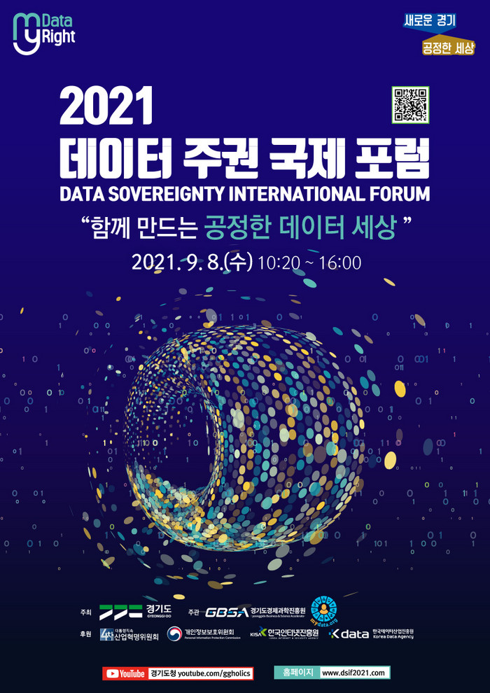 경기도가 주최하는 ‘2021 데이터 주권 국제포럼’이 9월 8일 고양 킨텍스 제2전시장에서 현장행사와 온라인행사를 병행해 개최된다.