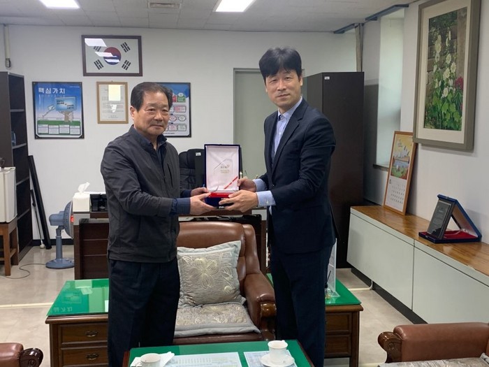 코로나19로 인천장애인직업재활의 날 기념식이 온라인으로 개최됨에 따라 지난 10월 26일 공단 이사장실에서 인천광역시장애인직업재활시설협회 윤창호 회장이 표창을 전달했다.