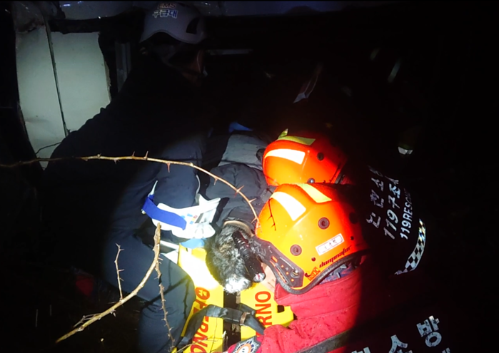| ▲강화소방서는 지난 1일 하점면 도로 추락 신고를 받고 현장에서 인명구조를 하고 있다. (사진=강화소방서 제공) |