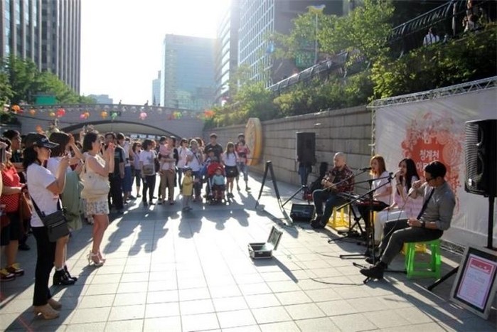 [세계로컬타임즈 이효진 기자] 청계천 물길 옆 시원한 바람과 함께하는 노래, 연주, 마술 등의 공연이 청계천 첫 번째 다리인 모전교에서 4호선 동대문역 부근의 오간수교에 이르기까지 수변 무대가 진행된다.