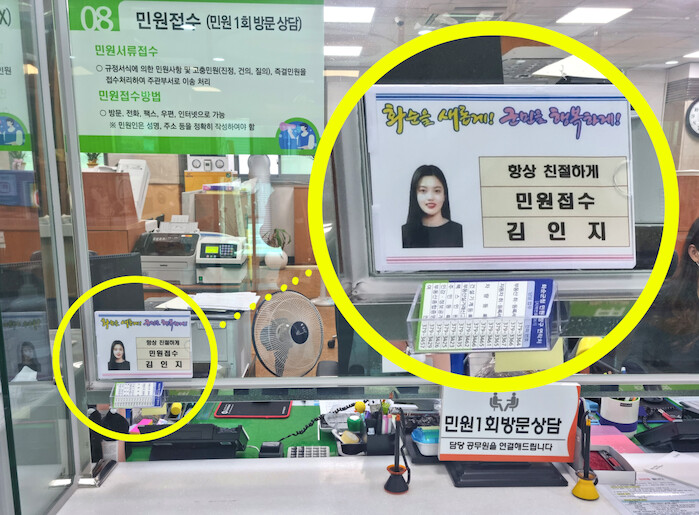 최근 화순군 행복민원과 민원창구 직원들은 민원인이 자신의 얼굴과 이름을 잘 볼 수 있게 명패의 사이즈를 키우고 창구 전면에 비치했다.
