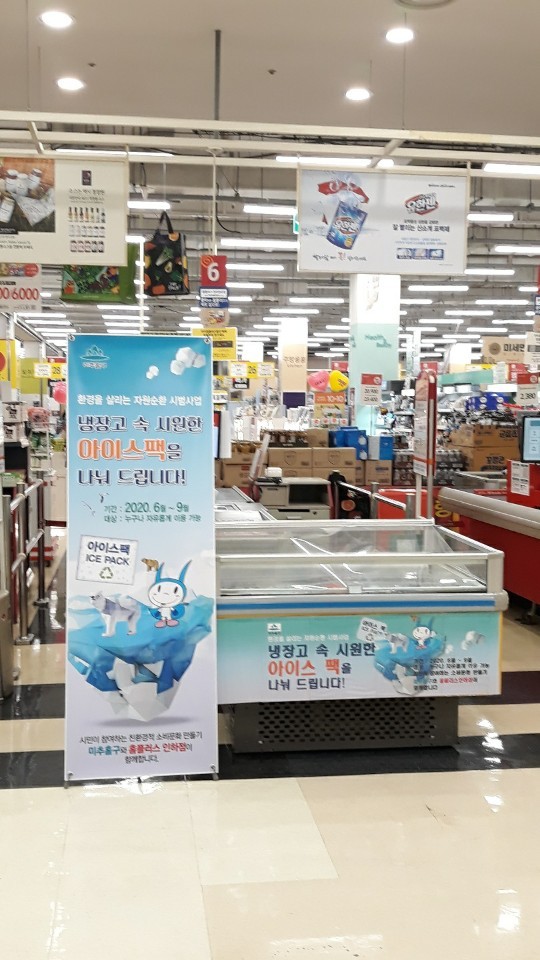 [세계로컬타임즈 장선영 기자] 미추홀지역 대형마트에서 재사용 아이스팩을 무료로 나눠주는 사업이 호응을 얻고 있다.