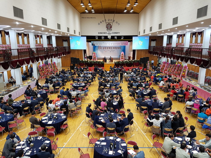 | ▲지난 12일 김천대학교 생명관에서 제4회 전국 김천경제인 화합대회를 열고 있다. |