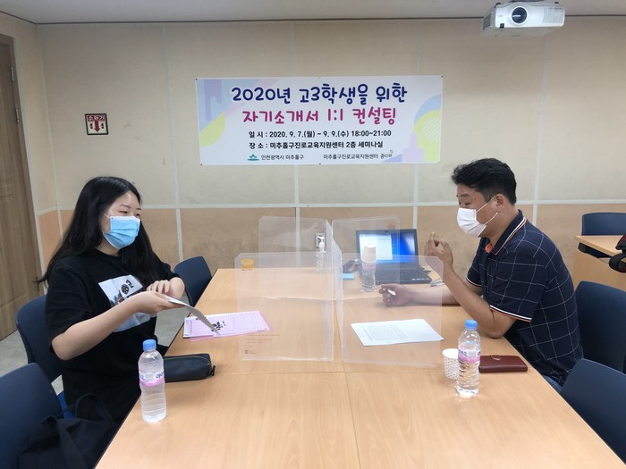 | ▲ '2020년 고3 학생을 위한 자기소개서 1:1 컨설팅'이 진행되고 있다. (사진=미추홀구 제공) |