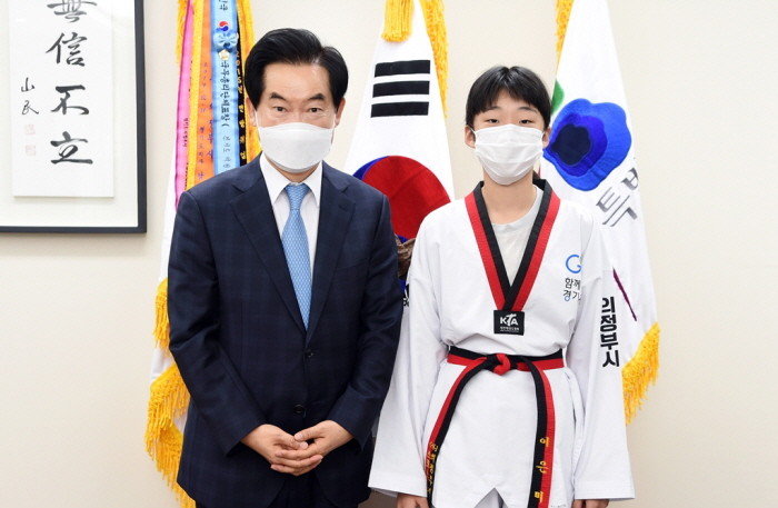 [세계로컬타임즈 신선호 기자] 안병용 의정부시장은 꿈나무 태권도 국가대표로 선발된 의정부회룡초등학교 6학년 이은미 선수를 만나 격려했다.
