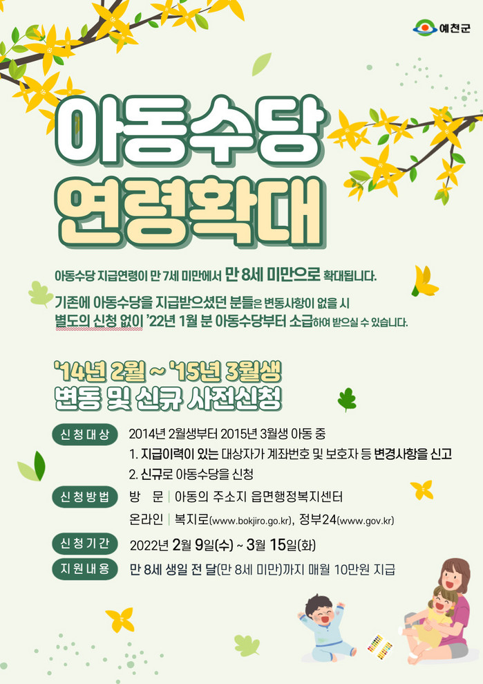 | ▲ 예천군 아동수당 연령확대. (사진=예천군청) |