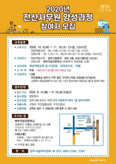 | ▲전산사무원 양성과정 참여자 모집 공고. (사진=양주시 제공) |