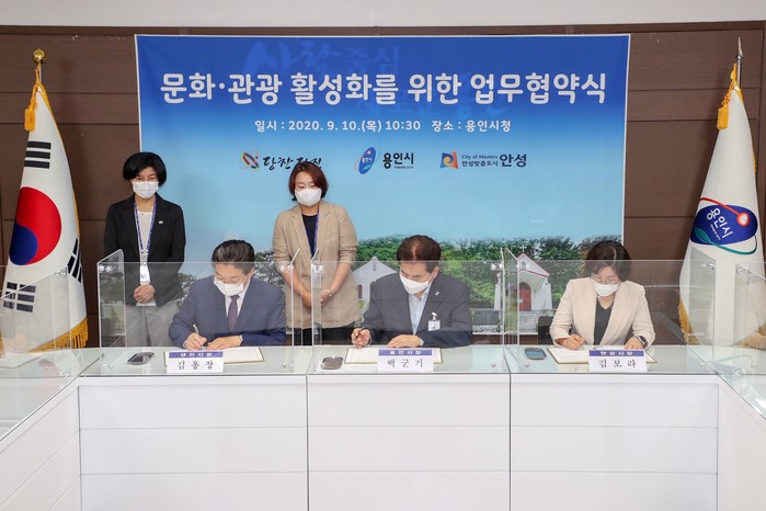 당진시는 10일 용인시청에서 김홍장 당진시장과 백군기 용인시장, 김보라 안성시장이 참석한 가운데 문화관광 활성화를 위한 업무협약을 체결했다.