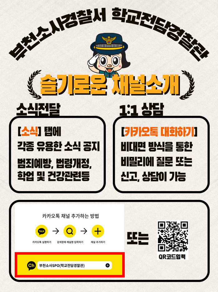 | ▲ '부천소사 학교전담경찰관 카카오톡 채널' 안내 포스터. (사진=부천시 제공) |