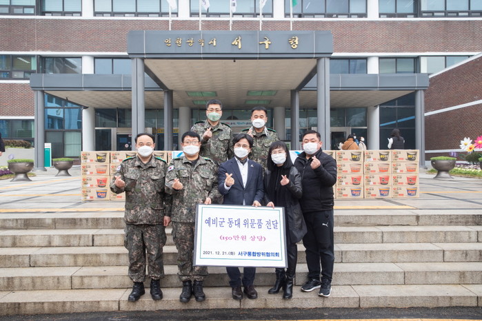 [세계로컬타임즈 한창세 기자] 인천 서구 통합방위협의회(의장 이재현 서구청장, 회장 김세훈)가 지난 21일 예비군 동대에서 근무하는 장병들을 격려하기 위한 위문품 150만 원 상당 라면 전달식을 열었다고 밝혔다.
