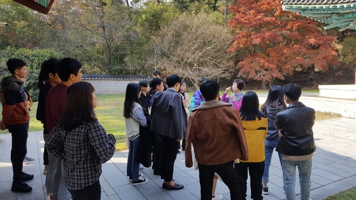| ▲ 공주지역 외국인유학생들이 경주를 방문해 문화해설사의 설명을 듣고 있다.(사진=경북도 제공) |