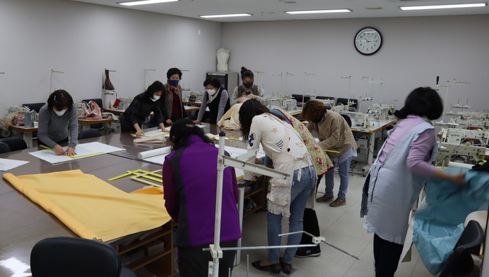 본격적인 마스크 제작은 전날부터 복지관 내 양재교육장 등에서 시작됐으며, 1일 20명씩 투입돼 재단, 미싱, 끈 부착, 실밥 제거, 다림질, 소독, 포장을 거쳐 한 주당 약 5,000매가 생산될 예정이다.