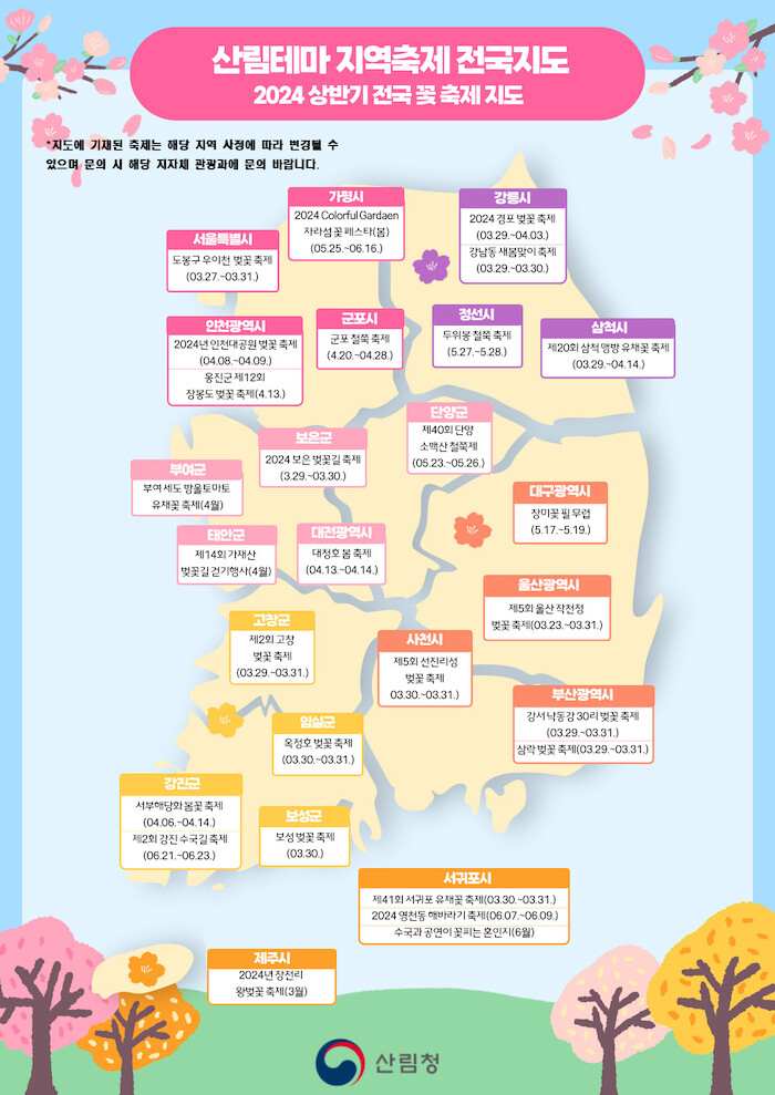 2024년 상반기 전국 꽃 축제 및 산・나무 임산물 축제