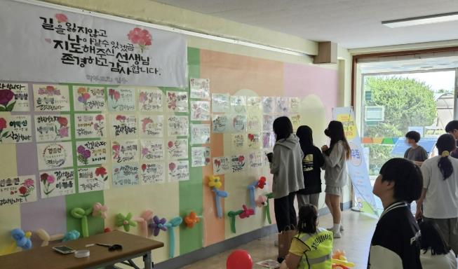 이번 행사는 학부모들이 정성스럽게 손글씨로 작성한 감사 메시지로 중앙현관을 아름답게 꾸민 포토존을 마련하여 학생, 교직원, 방문객들의 눈길을 사로잡았다. 한 장 한 장 정성 들여 쓴 손글씨 카드에는 선생님들에 대한 존경과 감사의 마음이 가득 담겨 있었다.