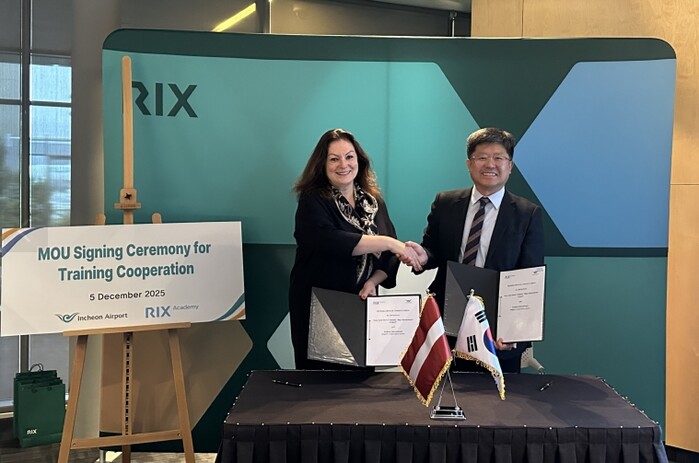 지난 5일 라트비아 리가공항공사 본사에서 진행된 양해각서 체결식에는 인천국제공항공사 신가균 경영본부장, 리가공항공사 라일라 오디나(Laila Odina) CEO 겸 이사회 의장 등 양 기관 관계자 약 10명이 참석했다.