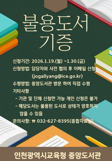 불용도서 나눔에 관한 자세한 사항은 중앙도서관 종합자료실로 문의하면 된다.