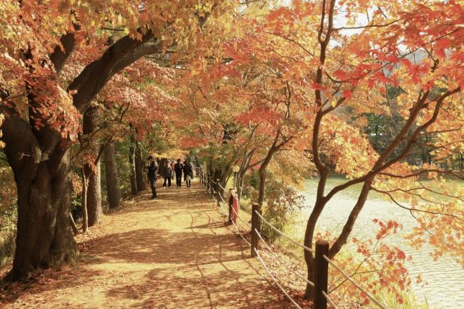 청평 옛 중앙내수면연구소는 평소 일반인 출입이 제한된 지역이지만, 봄의 벚꽃길과 가을의 단풍길에만 한시적으로 문을 열고 있다. 올해는 전국적으로 비가 잦아 단풍이 예년만 못하다는 평가가 많았음에도, 연구소 단풍길은 저수지를 배경으로 붉고 노란 단풍이 조화를 이뤄 아름다움을 자랑했다.