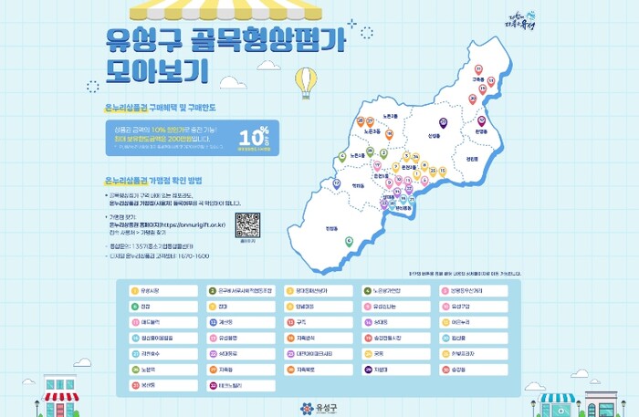 정용래 유성구청장은 “이번 지정 요건 완화로 생활권 중심의 골목형상점가 지정이 확대될 것으로 기대한다”라며 “골목형상점가를 중심으로 소상공인의 매출 증대와 고객 유입 확대를 위한 상권 활성화 여건을 강화하겠다”라고 말했다.