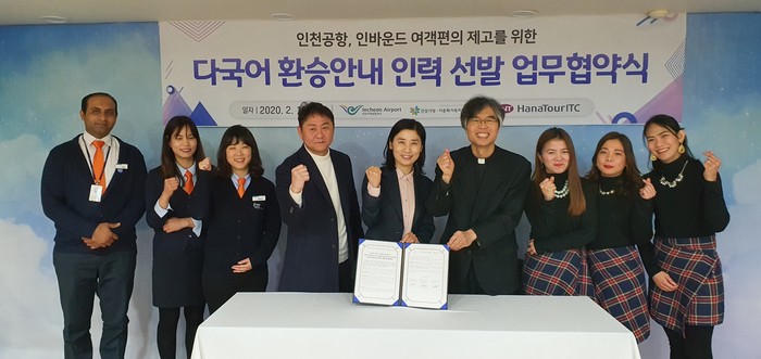 최근 열린 협약식는 중구 건강가정·다문화가족지원센터의 센터장, 인천공항 미래사업본부 본부장, 하나투어아이티씨 대표가 참석, 이번 업무협약으로 다국어 환승안내 인력 선발이 원활히 이뤄질 수 있도록 협력을 다짐했다.