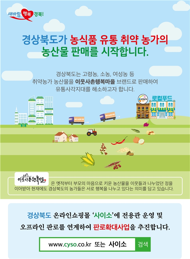 | ▲ 경상북도가 추진하는 ‘농식품유통 취약농가 판로확대 지원사업’ 홍보 포스터. (자료=경북도 제공) |