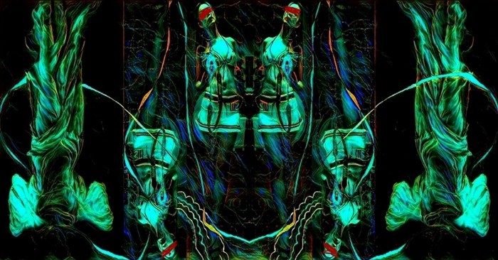 이같이 여러 단계의 매체 접속을 통해 보이는 실상과 보이지 않는 허상, 그리고 그 속에서 관찰자로 그 무엇의 공존을, 반복되는 존재의 데칼코마니(Decalcomanie) 효과로 시공간에 흐르는 과거, 현재, 미래 스쳐 지나는 찰나의 순간 에너지를 하나의 실상으로 표현한다.